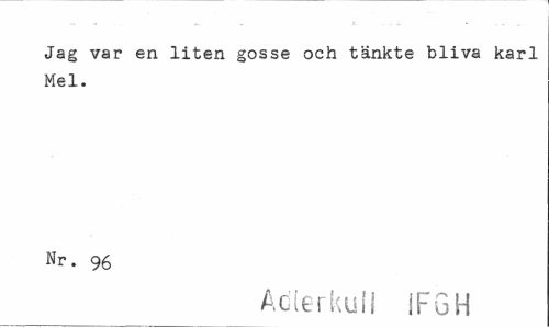 //// Jag var en liten gosse och tänkte bliva karl Mel. //// Nr. 96 //// Adlerkuli IFGH ////