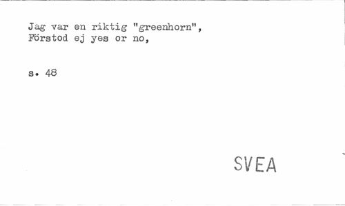 //// Jag var en riktig "greenhorn", Förstod ej yes or no, //// s. 48 //// SVEA ////