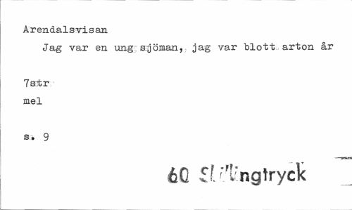 //// Arendalsvisan //// Jag var en ung sjöman, jag var blott, arton år //// 7 str mel //// s» 9 //// -TSWB2 //// 6 C £t rTngtryck ////