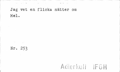 //// Jag vet en flicka nätter om //// Mel. //// Nr. 253 //// Adlerkuli IFGH ////