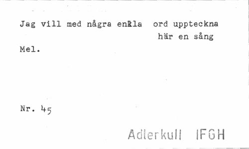 //// Jag vill med några enkla ord uppteckna //// här en sång //// Mel. Nr. 1+5 //// Adierkull IF6H ////