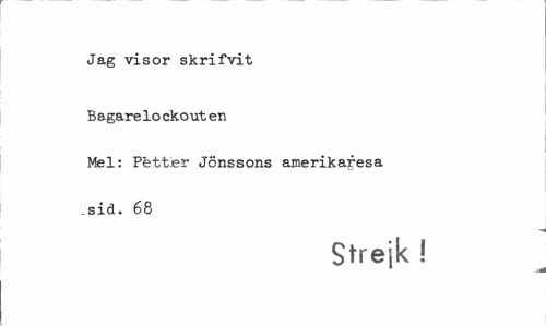 //// Jag visor skrifvit Bagarelo ekout en //// Mel: Petter Jönssons amerikaresa sid. 68 //// Strejk ! //// .i* ////