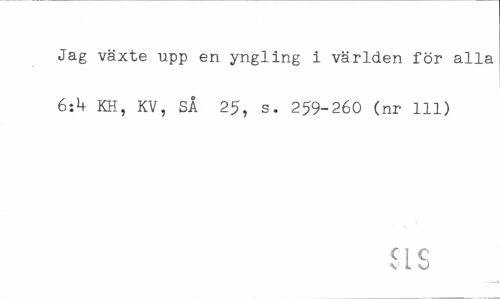//// Jag växte upp en yngling i världen för alla 6:H KH, KV, SÅ 25, s. 259-260 (nr 111) //// SL S ////