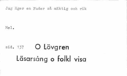 //// Jag äger en Fader så mäktig och rik Mel. //// sid. 137 O Lövgren //// Lösarsång o folkl visa ////
