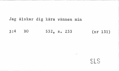 //// Jag älskar dig kära vännen min //// 3:4 BO 532, s. 233 (nr 131) //// SLS ////
