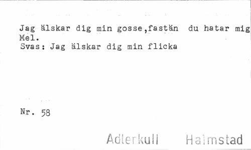 //// Jag älskar dig min gosse,fastän du hatar mig Mel. //// Svas: Jag älskar dig min flicka Nr. 58 //// Aäierkuli Halmstad ////