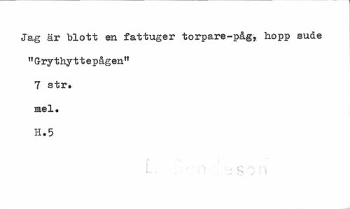 //// Jag är blott en fattuger torpare-påg, hopp sude "Grythyttepågen" 7 str. mel. //// H.5 //// ¦ . ' . -son ////