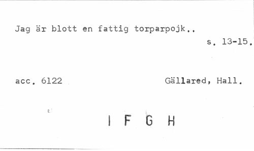 //// Jag är blott en fattig torparpojk,, //// s. 13-15. //// acc. 6122 Gällared, Hall. //// I F G H ////