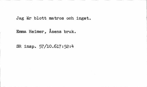 //// Jag är blott matros och inget. Emma Heimer, Åsens bruk. //// SR insp. 57/10.617:52:4 ////