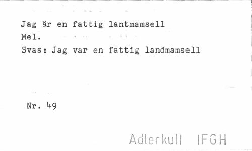 //// Jag är en fattig lantmamsell Me 1. //// Svas: Jag var en fattig landmamsell Nr. 1+9 //// Adlerkull 1FGH ////
