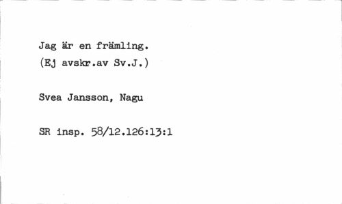 //// Jag är en främling. (Ej avskr.av Sv.J.) //// Svea Jansson, Nagu //// SR insp. 58/12.126:13:1 ////