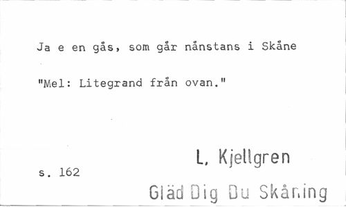 //// Ja e en gås> som går nånstans i Skåne "Mel: Litegrand från ovan." //// L, Kiellgren //// s. 162 //// Gläd Dig Du Skåning ////