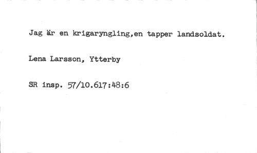 //// Jag är en krigaryngling,en tapper landsoldat. Lena Larsson, Ytterby SR insp. 57/10.617:48:6 ////