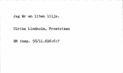 //// Jag är en liten lilja. Ulrika Lindholm, Prostviken SR insp. 58/11.696:6:7 ////