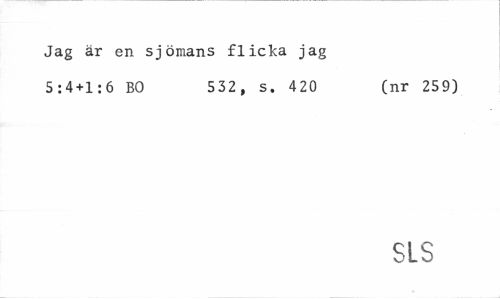 //// Jag är en sjömans flicka jag //// 5:4+1:6 BO 532, s. 420 (nr 259) //// SIS ////