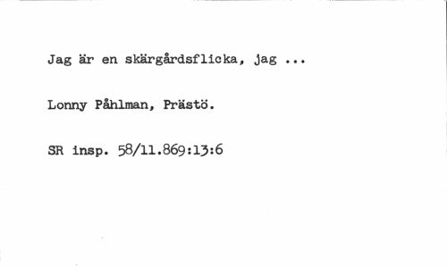 //// Jag är en skärgårdsflicka, jag ... Lonny Påhlman, Prästö. SR insp. 58/11.869:13:6 ////