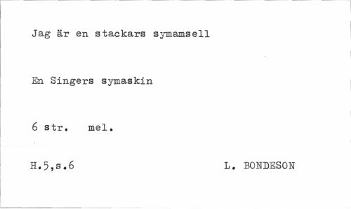 //// Jag är en stackars symamsell En Singers symaskin 6 str. mel. //// H.5,s.6 L. BONDESON ////