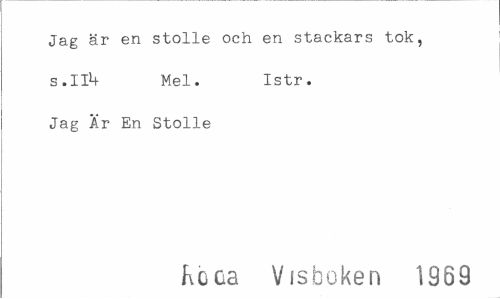 //// Jag är en stolle och en stackars tok, s . 1Mel. Istr. //// Jag Är En Stolle //// Koda Visboken 1969 ////