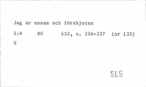 //// Jag ar ensam och förskjuten //// 3:4 BO 532, s. 236-237 (nr 133) //// N //// SIS ////