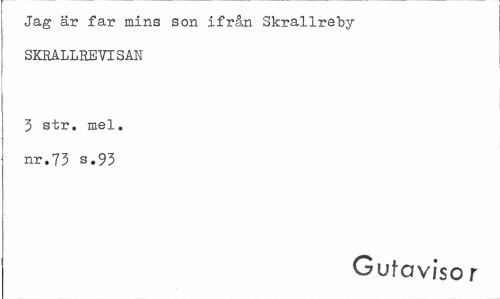 //// Jag är far mins son ifrån Skrallreby SKHALLEBVISAN //// 3 str. mel. nr.73 s.93 //// Gutoviso r ////
