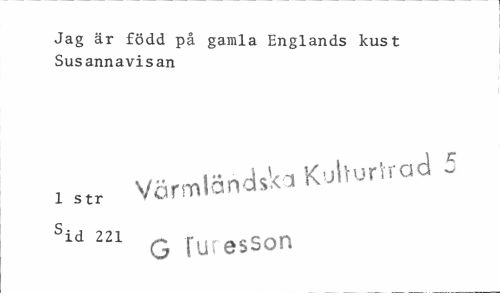 //// Jag är född på gamla Englands kust Susannavisan //// ... Kulturttad 5 //// ! str Värmlands*3 //// sid 221 q furesson ////