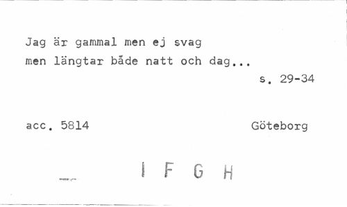 //// Jag är gammal men ej svag //// men längtar både natt och dag... //// s. 29-34 //// acc. 5814 Göteborg //// I F G H ////