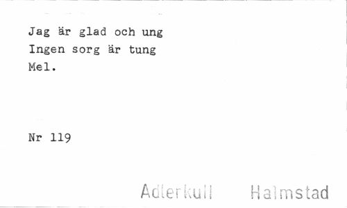//// Jag är glad och ung Ingen sorg är tung Mel. //// Nr 119 //// Aoierkuii Halmstad ////