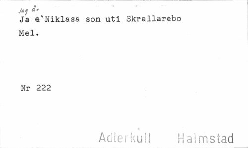 //// Mf *r //// Ja esNiklasa son uti Skrallarebo Mel. //// Nr 222 //// AcHerkuii Halmstad ////