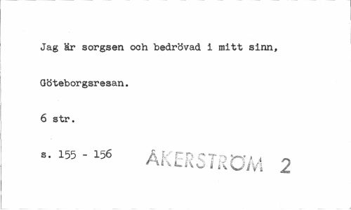 //// Jag är sorgsen och bedrövad i mitt sinn, Göteborgsresan. 6 str. //// s. 155 - 156 Å^pDCT-iwi i ^ //// lixum 2 ////