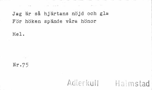 //// Jag är så hjärtans nöjd och gla For höken spände våra hönor //// Mel. Nr.75 //// Adlerkull Halmstad ////