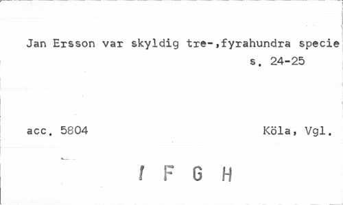 //// Jan Exsson var skyldig tre-»fyrahundra specie //// s. 24-25 //// acc. 5804 Kola, Vgl. //// / F G H ////