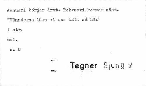 //// Januari börjar året. Februari kommer näst. "Månaderna lära vi oss lätt så här" 1 str. mel. s. 8 //// Tegner S^nt) i ////