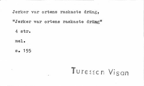 //// Jerker var ortens raskaste dräng, "Jerker var ortens raskaste drä®g" 4 str, mel, s. 155 //// Tu res sen Visan ////