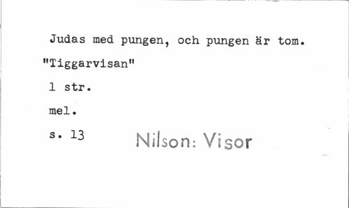 //// Judas med pungen, och pungen är tom. "Tiggarvisan" 1 str. mel. //// s' 13 Nilson: Visor ////