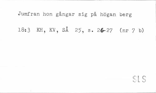//// Jumfran hon gångar sig på högan berg 18:3 KH, KV, SÅ 25, s. 26-27 (nr 7 b) //// SIS ////
