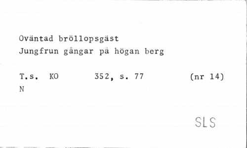 //// Oväntad bröllopsgäst Jungfrun gångar på högan berg //// T.s. KO 352, s. 77 (nr 14) //// N //// SLS ////