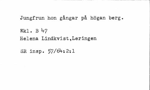 //// Jungfrun hon gångar på högan berg. Ekl. B 1+7 //// Helena Lindkvist,Leringen SR insp. 57/6^s2-.1 ////