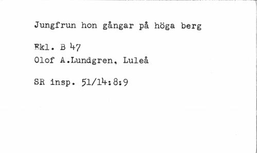 //// Jungfrun hon gångar på höga berg Kkl. B 1+7 //// Olof Å.Lundgren, Luleå SE insp. 51/1^:8:9 ////