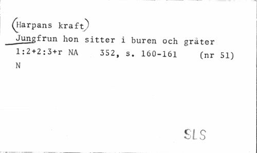 //// ^Harpans kraft) //// ^Jungfrun hon sitter i buren och gråter 1:2+2:3+r NA 352, s. 160-161 (nr 51) //// N //// SLS ////