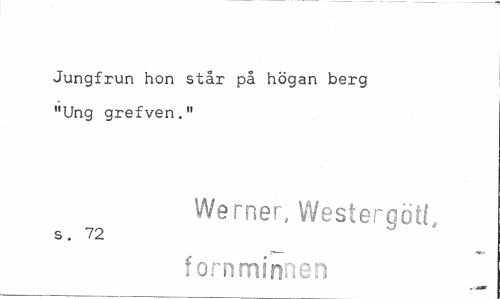 //// Jungfrun hon står på högan berg "Ung grefven." //// Werner, Westerqötl //// s. 72 ^ ' //// fornminnen ////
