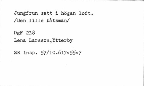 //// Jungfrun satt i högan loft. /Den lille båtsman/ //// DgF 238 //// Lena Larsson,Ytterby //// SR insp. 57/10.617*.55»7 ////