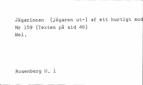 //// Jägarinnan (jägaren ut-) af ett hurtigt moc //// Nr 159 (Texten på sid 48) //// Mel. //// Rosenberg H. 1 ////