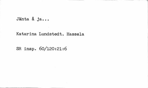 //// Jänta å ja... //// Katarina Lundstedt. Hassela SR insp. 60/120:21:6 ////