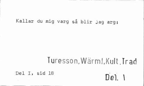 //// Kallar du mig varg så blir Jag arg; //// Turesson, Wärml, Kult. Trad //// Del. \ ////