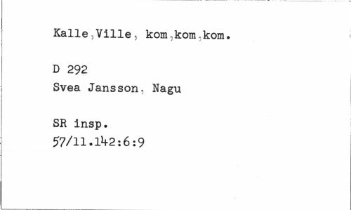 //// Kalle ,Ville 5 kom.kom;kora. D 292 //// Svea Jansson. Nagu //// SR insp. 57/11.1^2:6:9 ////