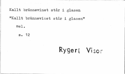 //// Kallt brännevinet står i glasen "Kallt brännevinet står i glasen" mel. s. 12 //// Rygerl Viscr ////