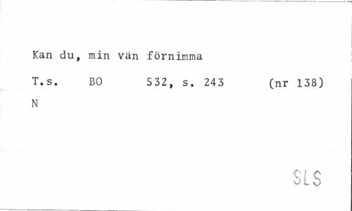 //// Kan du, min vän förnimma //// T.s. BO 532, s. 243 (nr 138) //// N //// SL S ////
