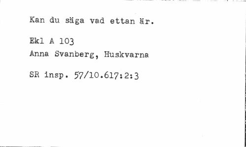 //// Kan du säga vad ettan är. Ekl A 103 //// Anna Svanberg, Huskvarna SR insp. 57/10.617:2:3 ////