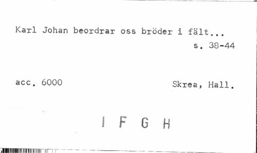 //// Karl Johan beordrar oss bröder i fält... //// s. 38-44 //// acc. 6000 Skrea, Hall. //// I F G H //// ¦¦iiiiiiiiiiiiniiii iiiii 11111111111 iiiiiiiiii ii in 11 --- ////