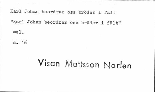 //// Karl Johan beordrar oss bröder i fält "Karl Johan beordrar oss bröder i fält" mel. s. 16 //// Visan Mattsson Morlen ////